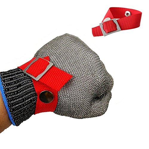 SODIAL 安全カット防刃抵抗ステンレススチールワイヤーブッチャー赤いグローブサイズLハイパフォーマンスレベル5の保護#B