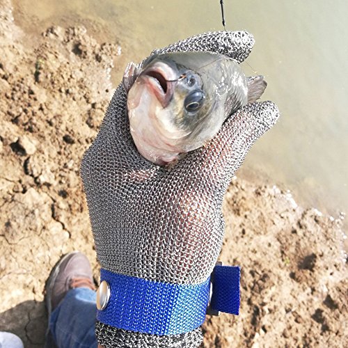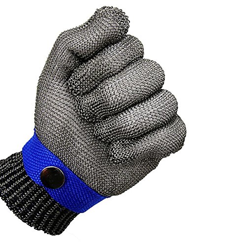SODIAL 安全カット防刃抵抗ステンレススチールワイヤーブッチャー青いグローブサイズM ハイパフォーマンスレベル5の保護#D