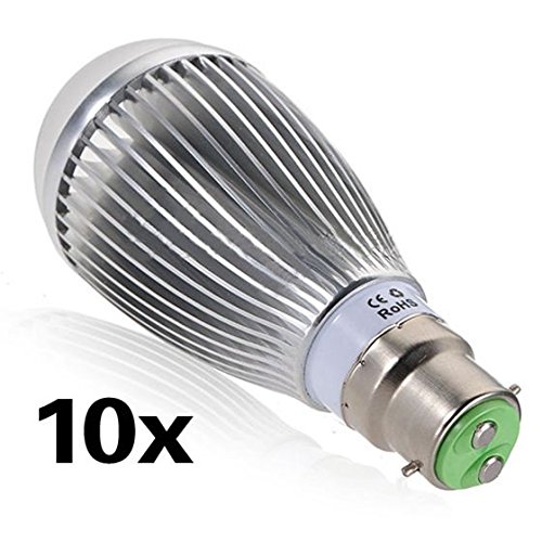 スポットライト,SODIAL(R) 10 x 超高輝度B22バヨネット10Wピュアホワイト グローブランプ電球 スポットライト 110V-220V