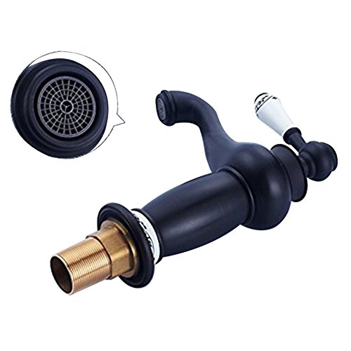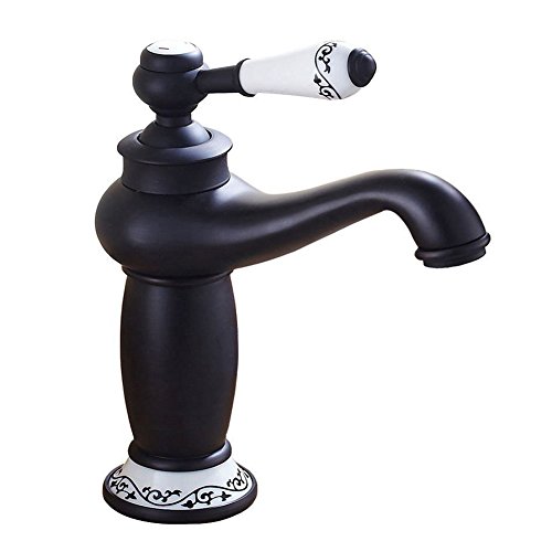 SODIAL(R)オール銅セラミックスシングルハンドル シングルホールキッチン 洗面器のクロム蛇口(ブラックカラー)