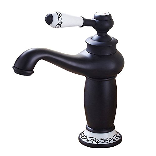SODIAL オール銅セラミックスシングルハンドル シングルホールキッチン 洗面器のクロム蛇口(ブラックカラー)