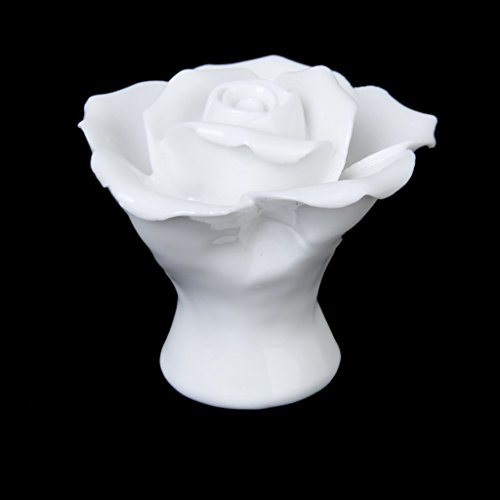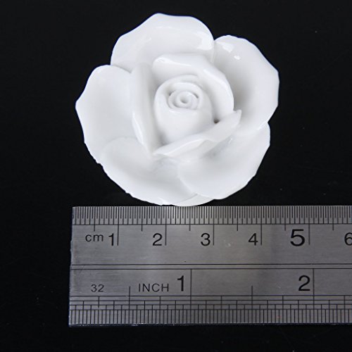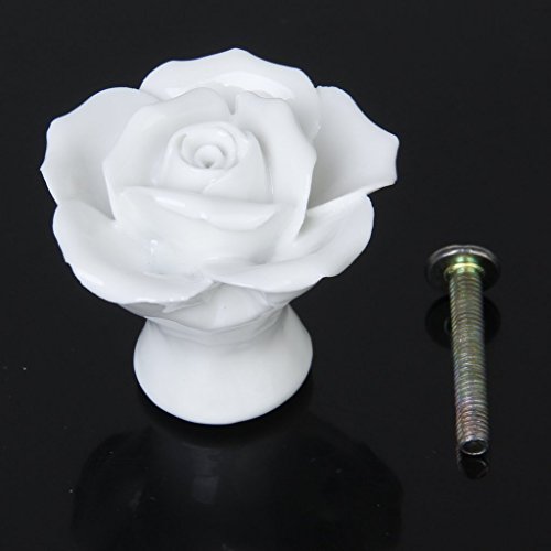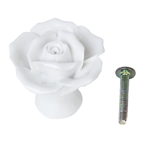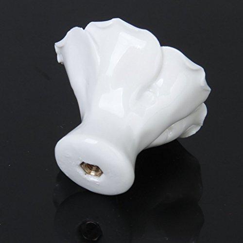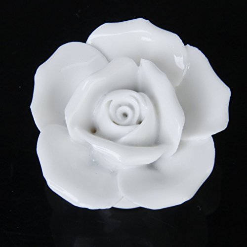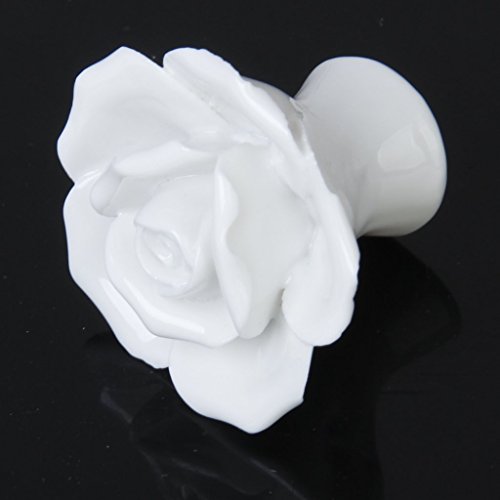 SODIAL(R)1 x ローズ花のセラミックキッチン家具キャビネット戸棚ハンドル プルノブ 白