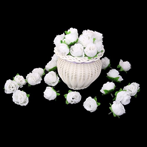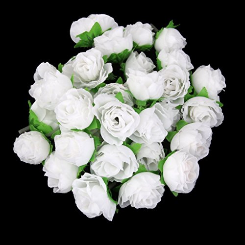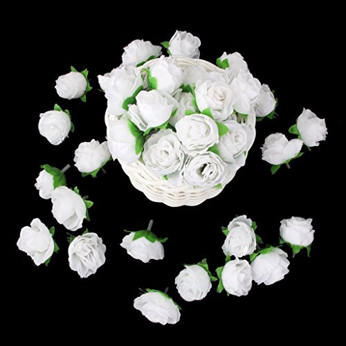 SODIAL(R) 50個 3cm カローラフラワーヘッド 人工ローズ 部屋結婚式デコレーション(ホワイト)