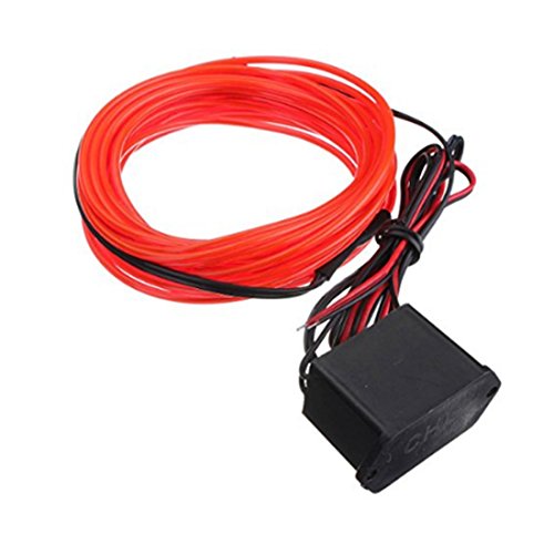 ELワイヤー,SODIAL(R) 4メートル ELケーブルDC 12Vフレキシブルネオンライト(クリスマスパーティー用)パーティーハロウィンコスチュームディスプレイ(赤)