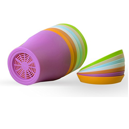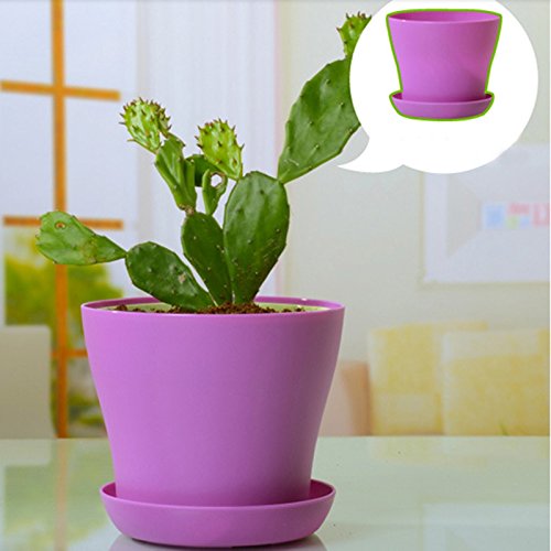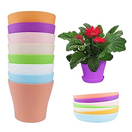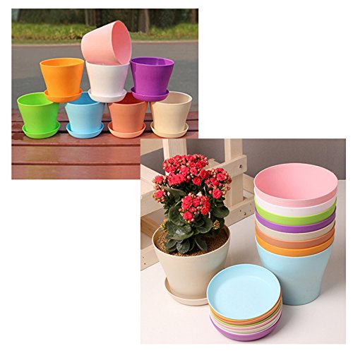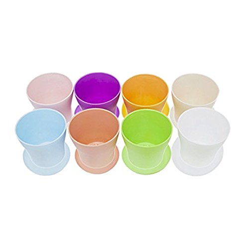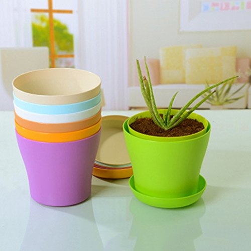 SODIAL 8x4インチの小さな植物ポット カラフルなプラスチックの花のポット 屋内植物ポット オフィス、ハウス、デスクの為 パレット/トレイ付き(ブルー、パープル、グリーン、ベージュ、ホワイト、ピンク、オレンジ、アプリコット)