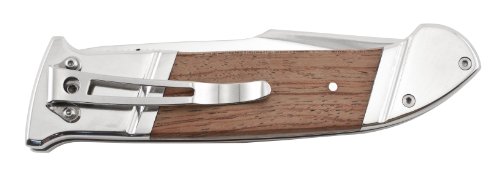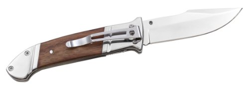 Introducing the beautiful new Fielder XL. The contrast of the vertical grain wood against the high luster bolsters creates a very appealing visual tension. This is a knife that is comfortable as a daily carry or out in the wilds. Using a proven liner lock system provides reliability as well as an ambidextrous opening of the Fielder XL痴 capable blade. The Fielder XL will catch your eye, but not your pocket book! Blade Length: 4.125" x .115" Overall Length: 9.625" Weight: 8.64 oz. Edge: Straight Steel: 7Cr13 Stainless HRC: 56-57 Handle: Wood Finish: Mirror Polish Includes: Pocket Clip Country of Origin: China