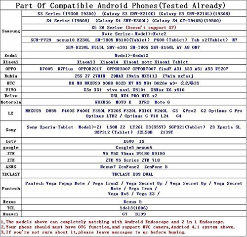 1.This endoscope camera only works on Android 4.0+ systems,temporally not support IOS systems, Windows Phone, Blackberry.