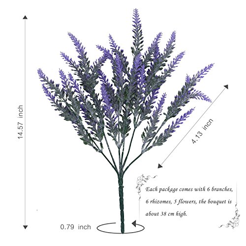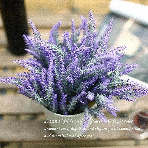 Soledi人工ラベンダーFlocked Bouquet Large 6pcs inパープル花アレンジメントブライダルホームDIY床ガーデンOfficeウェディングデコレーション