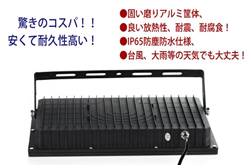 仕様: パワー: 100W 入力周波数: 50 / 60HZ 入力電圧: AC100-120V チップ: SMD4014 LEDS EPISTAR LEDチップ数: 480 照度: 9600lm 色温度: 電球色(3000K) IPレート: IP65 材質: アルミダイキャスト 寿命: 50,000時間以上 稼働温度: -30℃〜+ 50℃ 寸法: 351* 241* 55MM パッキングリスト: 1×100W LED投光器