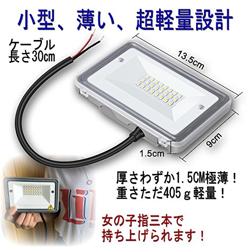 - 防水ライト:IP66ハイ防水・防塵レベル、過酷な環境も乗り越えられる(「IP66」とは、防塵6級:粉塵が中に入らない(耐塵形)、防水6級:豪雨、清潔などの水流は完全に影響なし)車庫、庭、公園、、夜釣り、トンネル、工事現場、舞台照明、BBQ、ガソリンスタンド、夜間イベントなどに適用します。使用場所:作業灯 舞台灯 看板灯 集魚灯 演出照明灯 駐車場 庭 公園など