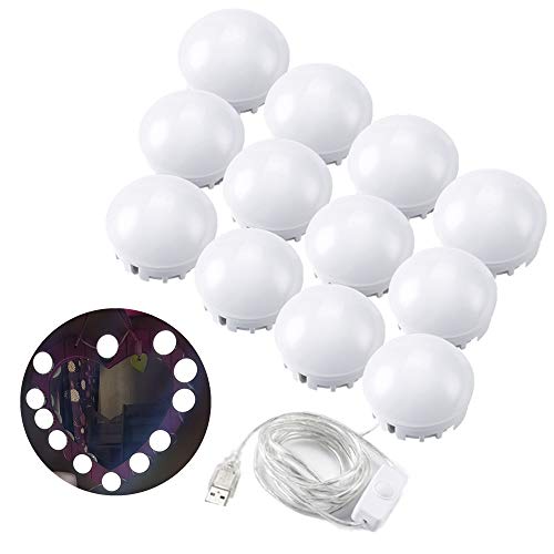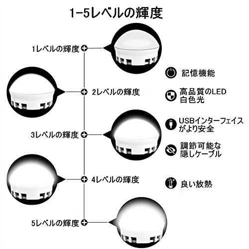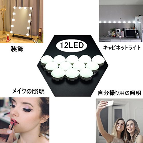 LEDバニティミラーライト SOLMORE ミラーストリップ 女優ライト 12LED USB給電 2W ホワイト 高輝度 調光可能 ミラーなし 照明器具 装飾 メイク 化粧鏡 化粧台 洗面台 部屋 ドレッサー