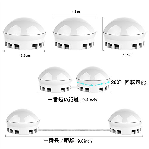 - 【電球の距離調整可能】電球が360°回転可能で、各電球を回して、LEDバニティミラーライトの2つの電球の間隔を調整します。最小距離は1cmで、最大距離は25cmです。