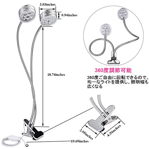 - ♠照明幅が広い:360度ご自由に回転できますので、均一なライトを提供し、照明幅も広くなります。もっと広い面積をカバーでき、植物に均一の光を浴びることができます。柔軟なグースネックなので、光の位置を調整でき、植物を必要に応じて光と植物との距離も調整できます。クリップを搭載して、机等にクリップを挟んで、使用便利です。