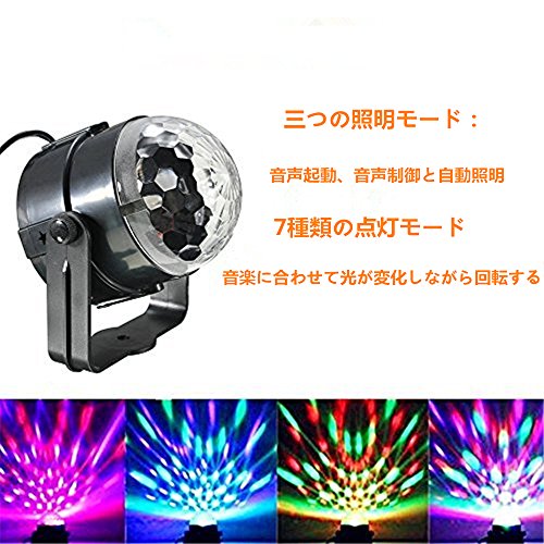 - 音声起動、音声制御と自動照明と言う3種類のモードがあります。だから、好きなモードを自由に選べることができます。また、音楽に合わせて光が変化しながら回転します。七種類の色があります。それで、七彩な色が交錯して、眩しい感じがされます。視覚的に壮大な輝きを与えます。