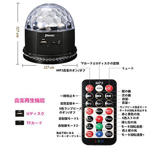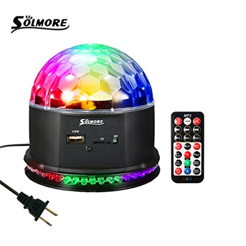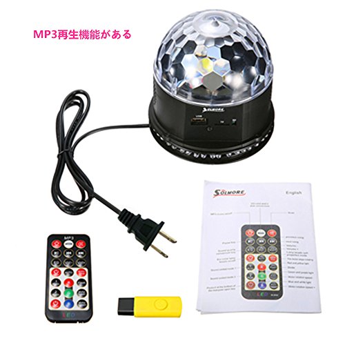 SOLMORE ステージライト カラフル水晶魔球LED ミラーボール 舞台照明 RGB リモコン付き Uディスク付き ピックアップ内蔵 音声起動 ステージ/ ディスコ/パーティー/KTV/カラオケ/クラブ/バー照明用 雰囲気を盛り上げる AC 90-240V アメリカ規格
