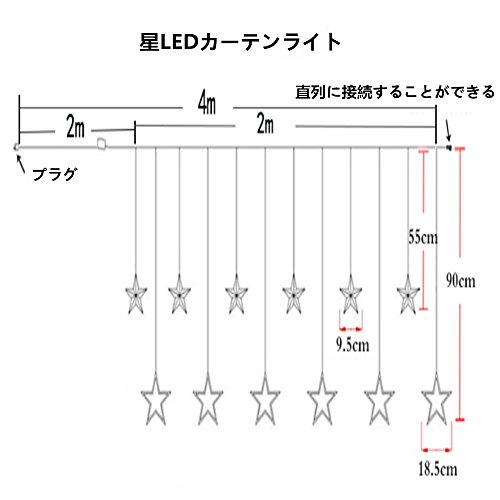 - カーテンライトは高品質の銅線を採用して、屈曲性と柔軟性が優れています。六つの大きい星と六つの小さい星があります。高品質の138LEDで、高輝度です。もちろん省エネと安全です。他のライトのひもを結ばれることができます。電源供給が3つのカーテンライトを駆動することができます。