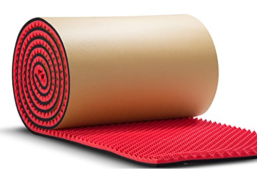 SOOMJ 防音壁 吸音材【10mロール波型 厚さ50mm レッド】吸音スポンジマット 耐火性 ドラムに最適 子供部屋防音 吸音大面積 裏面が粘着テープ付きなのでカットして簡単貼り付け