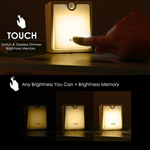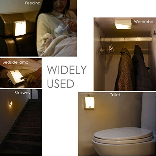 SOONHUA 人感センサーライト 授乳ランプ LED夜間ライト ウォールライト 枕元ライト キャビネット 壁 足元灯 自動点灯消灯 粘着固定 調光可能 (イエローライト, 電池式)