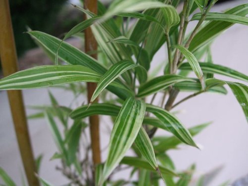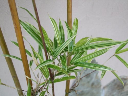 - 【商品説明】葉に白い斑の入った竹です梅雨時に出るタケノコ(筍)は皮色が紫をしており食用とされます小型なので和風庭園に多く利用され、生垣にも利用できます