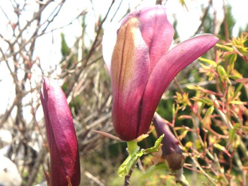 - 【商品説明】 モクレン科モクレン属の落葉低木 別名 マグノリア、ハネズ、モクレンゲと呼ばれます 春、新葉が出る前に、骨格がしっかりした木の枝先に、濃紅色で卵形の紫色の大きな花を咲かせます花は上向きに咲き、全開せず半開状(開ききらない状態)に咲きます