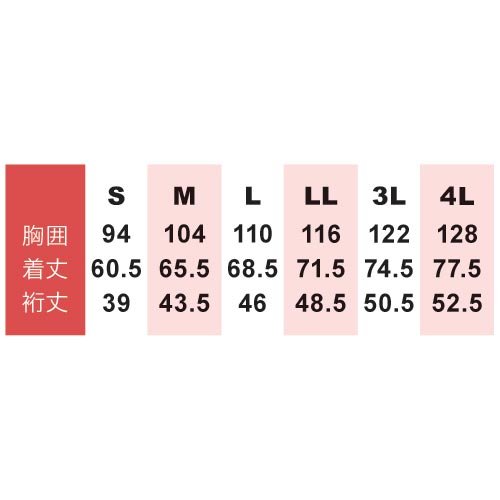 - 胸囲 着丈 裄丈