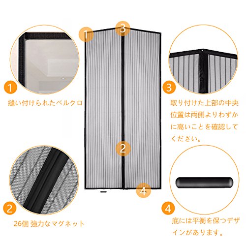 - 害虫・暑さ対策:メッシュとマグネットの組み合わせ、通り抜けた後瞬間には自動的にギャップなしで閉まって、大嫌いな蚊やゴキブリなどの虫、埃、煙、アレルギー物質の侵入を防ぎながら、外の涼しい空気の循環を良くします。