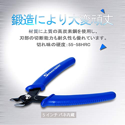 SPEEDWOX ミニニッパー ゲートカット 先細 プラスチックニッパー ワイヤーカッター 130mm プラモデル マイクロ 小型 軽量 バネ付 硬質樹脂 切断可能 精密作業 ホビー クラフト アクセサリー 手芸用品 ツール プロ 模型工具