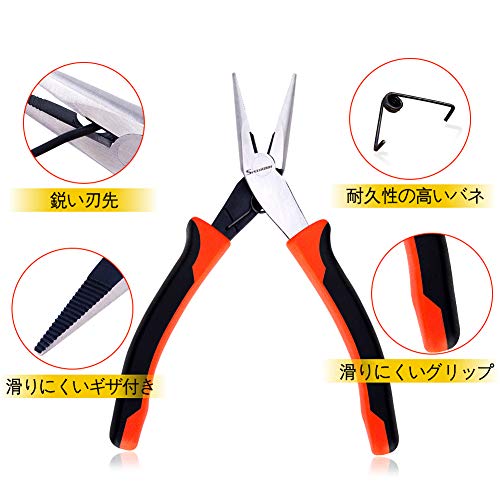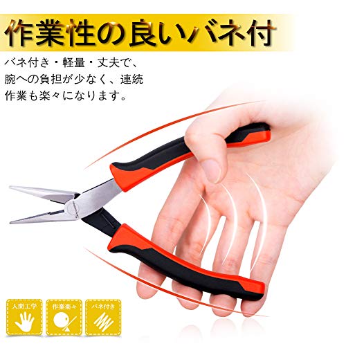 - 【用途・特徴】くわえ部は、掴んだ物が滑りにくいギザ付き、作業は楽です。丸カンやCカンを開いたり、カシメや金具の取り付けたり、細かいビーズをつまむのに適しています。軟鉄線や銅線を切る、曲げる、ねじる、挟む作業に最適です。コンパクトに持ち運びができ便利です。バネ付きなので腕への負担が少なく、連続作業しても疲れにくいです。