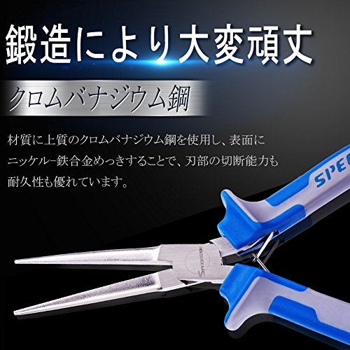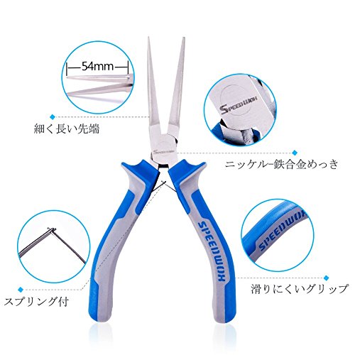 SPEEDWOX リードペンチ ラジオペンチ 先細 小型 ヤットコ ロングノーズ プライヤー ロングリーチ 極細 溝なし バネ付 軽量 精密 作業工具 ジュエリー製作 手芸 アクセサリー クラフト DIY 手作り プロ ホビー 150mm