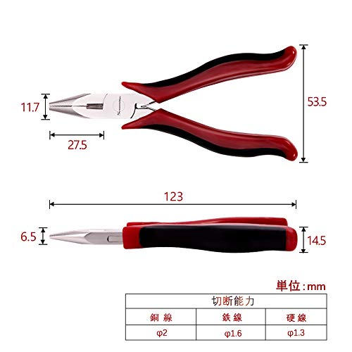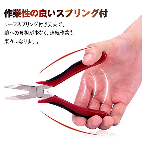 - 【用途】切断能力:銅線φ2mm、鉄線φ1.6mm、硬線φ1.3mm。くわえ部は、掴んだ物が滑りにくいギザ付き、作業は楽です。丸カンやCカンを開いたり、カシメや金具の取り付けたり、細かいビーズをつまむのに適しています。軟鉄線や銅線を切る、曲げる、ねじる、挟む作業に最適です。小型軽量タイプで、繊細な切断作業をしたい方におすすめです。