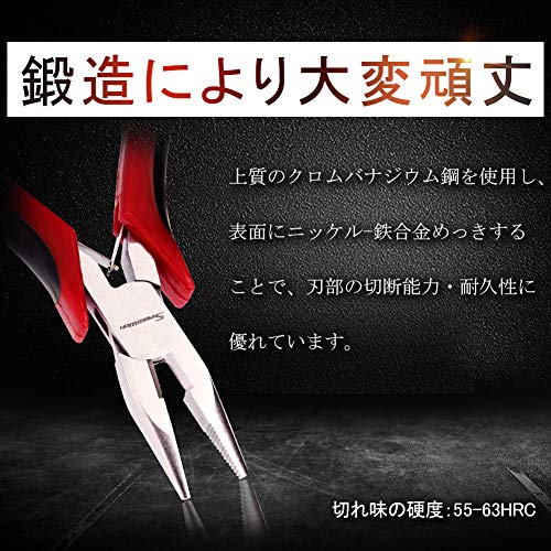 - 【仕様】全長約123mm、重量55g。入念な焼入れ処理が施されたつかみ面の硬度は約HRC55-63で、切断力が抜群です。(錆がつかないの為に、少し油が付きます。布できれいに拭き取ることができます。)