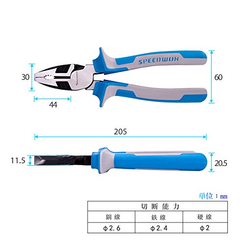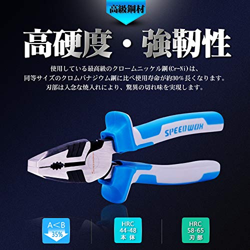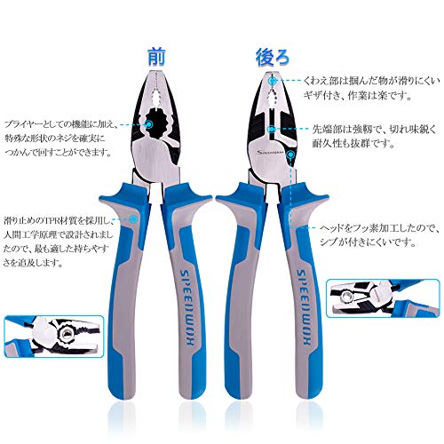 SPEEDWOX ペンチ ハイパワー 強力 プライヤー ワイヤーカッター カッティング 偏芯テコ 切断可能 切れ味35% UP スタンダード 溝付 ネジの取り外し 最高級 CR-NI鋼 超硬刃 プロ メンテナンス 作業工具 ツール 205mm