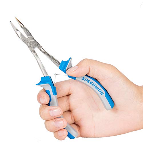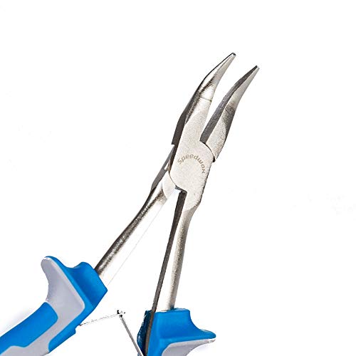 SPEEDWOX ロングリーチ 先曲ラジオペンチ ミニ プライヤー 45°縦曲がり 精密作業 手の届かない狭い所に最適 ヤットコ ロングサイズ 溝なし 先長 小型 軽量 バネ付 鍛造 車 バイク 設備 パソコン メンテナンス 機械 整備 修理 プロ ホビー 手芸 クラフト アクセサリー ツール 160mm