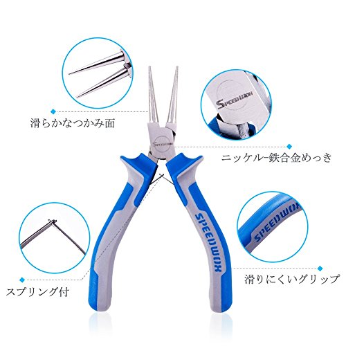 SPEEDWOX 丸ペンチ ラウンドノーズプライヤー 小型 ヤットコ 丸やっとこ 丸口 マイクロ ジュエリー製作 曲げ加工 軽量 バネ付 精密作業 ビーズ アクセサリー クラフト 手芸用品 手作り DIY 工具 プロ ホビー 130mm