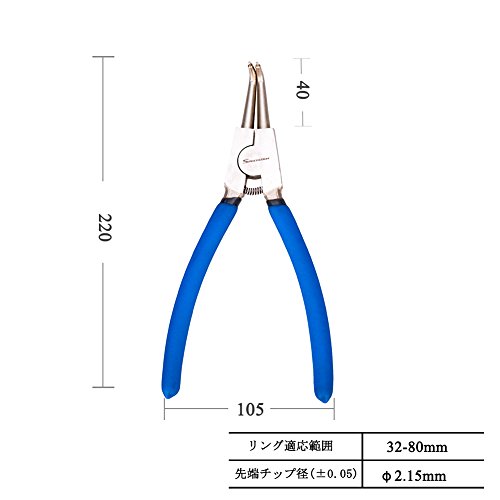 - 【用途・特徴】工作機械・電子機器等のC型止め輪(スナップリング)の着脱専用工具です。穴にスナップリングを取り付けるため、グリップを握ると開くプライヤーです。先端クローは曲爪です。バネ付きなので腕への負担が少なく、連続作業しても疲れにくいです。