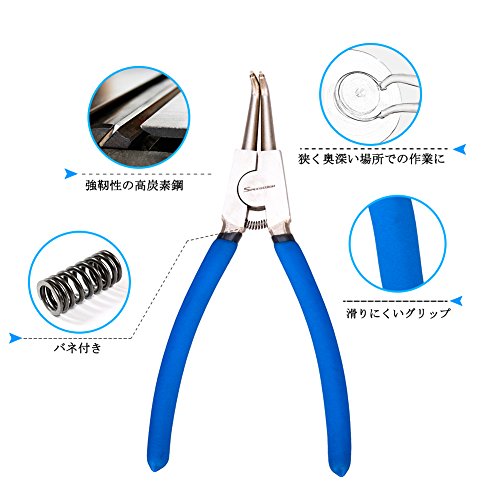 SPEEDWOX スナップリングプライヤー cリングプライヤー 軸用 曲爪 握ると先端が開く 90度 ベント 先端径1.7mm リング使用範囲10-28mm 全長約165mm バネ付 固定式 精密作業 金具 着脱用工具 整理用 プロ DIY