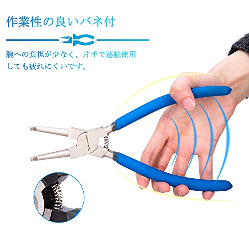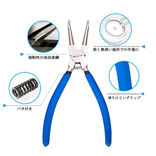 SPEEDWOX スナップリングプライヤー 穴用 曲爪 ベント 先端径1.7mm リング使用範囲10-30mm 全長約165mm バネ付 固定式 精密作業 金具 着脱用工具 整理用 DIY