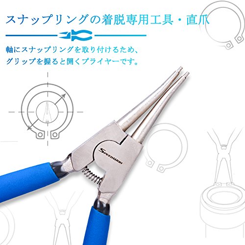 SPEEDWOX スナップリングプライヤー cリングプライヤー 軸用 直爪 握ると先端が開く 先端径1.75mm リング使用範囲19-60mm 全長175mm バネ付 固定式 精密作業 金具 着脱用工具 整理用 プロ DIY
