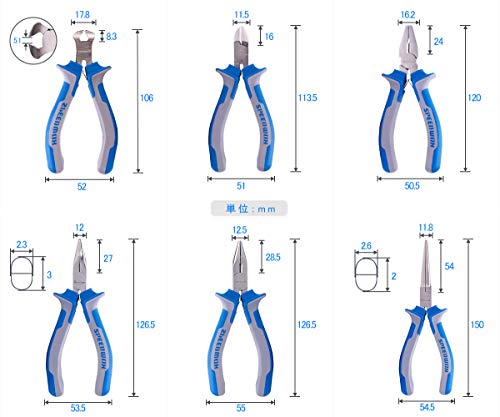 - 【セット内容】エンドニッパー(全長約106mm)、プラニッパー(全長約113.5mm)、ペンチ(全長約120mm)、先曲ラジオペンチ(全長約126.5mm)、先細リードペンチ(全長約150mm)、ラジオペンチ(全長約126.5mm)。今なら指カンをプレゼント中!