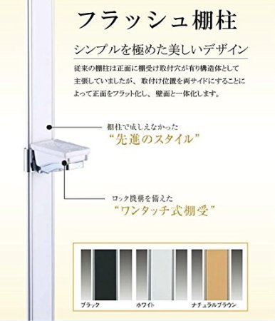 - ◆セット内容:フラッシュ棚柱4本(1820mmビス止め12ヶ所)、エンドキャップ8ケ、フラッシュ棚受4ケ