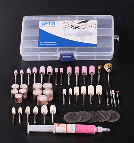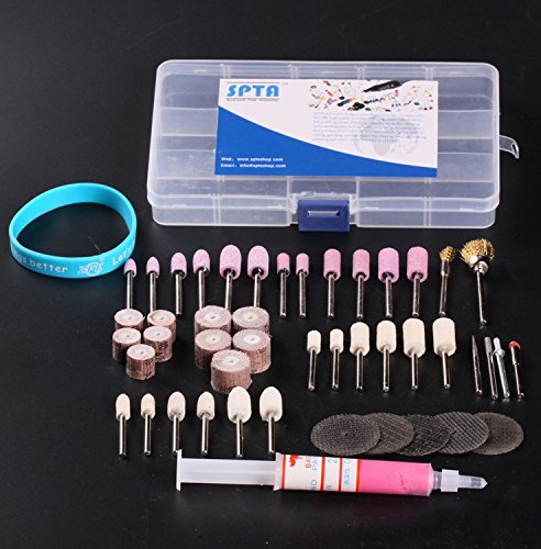 SPTA ロータリーツールアクセサリーセット付きボックス サンディング/グラインディングセット 為に 1/8"(3mm)シャンク Dremel (ドレメル)Proxxon ロータリーツール--サンディング、研削、研磨 45個のパック