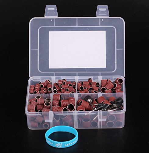 SPTA 1/2"(2.7mm).3/8" (10mm)&1/4"(6mm) サンディングバンド 60# 120# 320# とともに 1/8"(3mm) マンドレル 為に 1/8"(3mm)シャンク Dremel (ドレメル)Proxxon ロータリーツール--サンディング、研削、研磨 319個のパック ?1個 SPTAシリコーンリストバンド