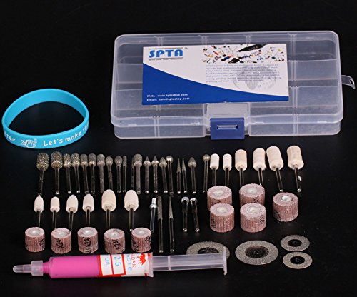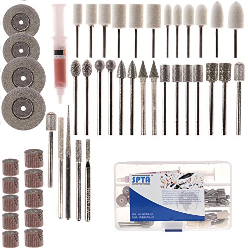SPTA ロータリーツールアクセサリーセット付きボックス サンディング/グラインディングセット 為に 1/8"(3mm)シャンク Dremel (ドレメル)Proxxon ロータリーツール--サンディング、研削、研磨 47個のパック