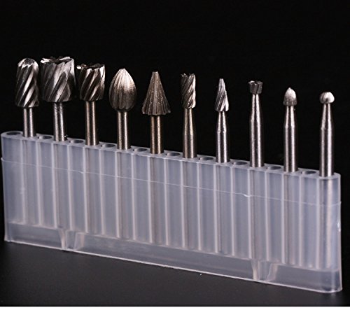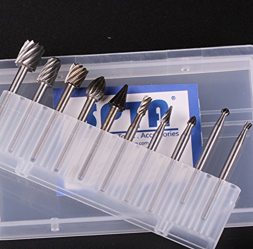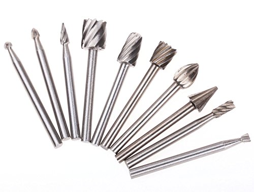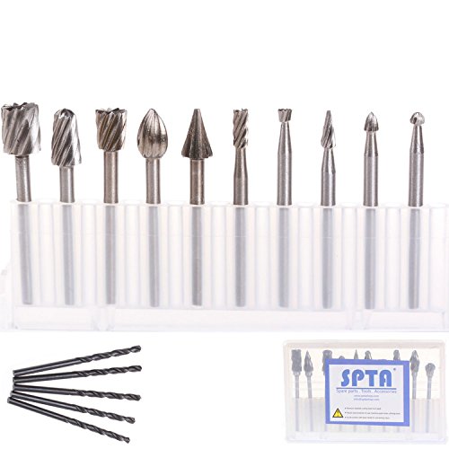 SPTA 高速度 工具 (HSS) ルータービット ルーター超硬彫刻ビット シャンク径:1/8" (3mm) DIY木工、彫刻、彫刻、掘削用 フィット Dremel (ドレメル)Proxxon ロータリーツール 10個のパック
