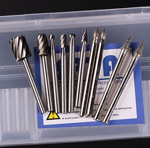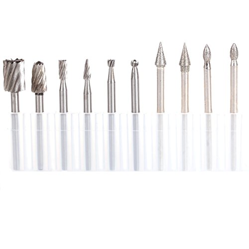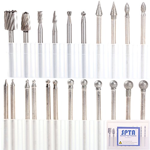 SPTA 6個高速度 工具 (HSS) ルータービット ルーター超硬彫刻ビット & 16個ダイヤモンドバリ シャンク径:1/8" (3mm) DIY木工、彫刻、彫刻、掘削用 フィット Dremel (ドレメル)Proxxon ロータリーツール