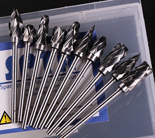 SPTA ダブルライン超硬バー タングステンバー 10本セット ダイヤモンドカット シャンク径 3/32"(2.35mm) 金物 切削 研磨 フィット Dremel (ドレメル)Proxxon ロータリーツール [並行輸入品]