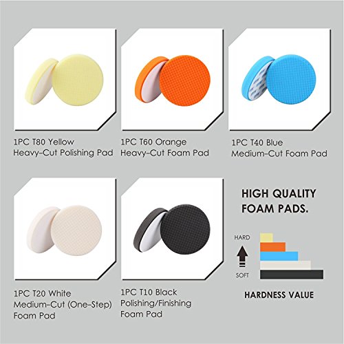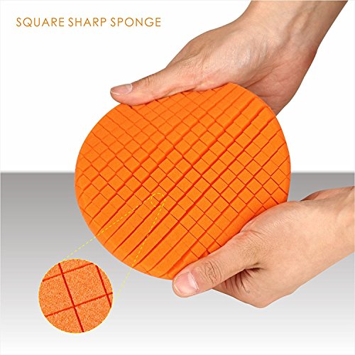 - スポンジパッド、硬さの5つの異なる色があります: オレンジ色の "赤" 緑 > 黒 > 青、非常に効率的なカットと最も困難な自動車の酸化コーティング、傷を磨くために使用されます。