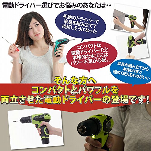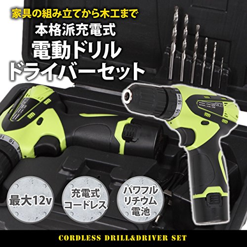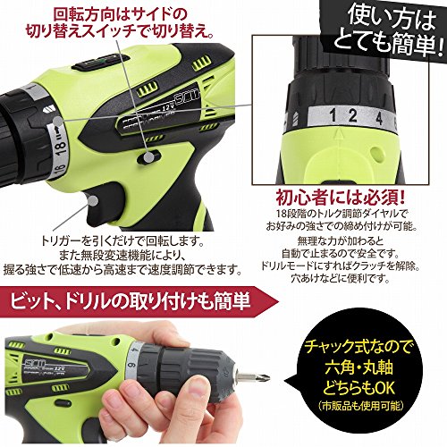 最大12v リチウム電池仕様の本格的電動ドリルドライバー。木工から家具の組み立てまでこ一台で作業できます。18段クラッチ機能付き