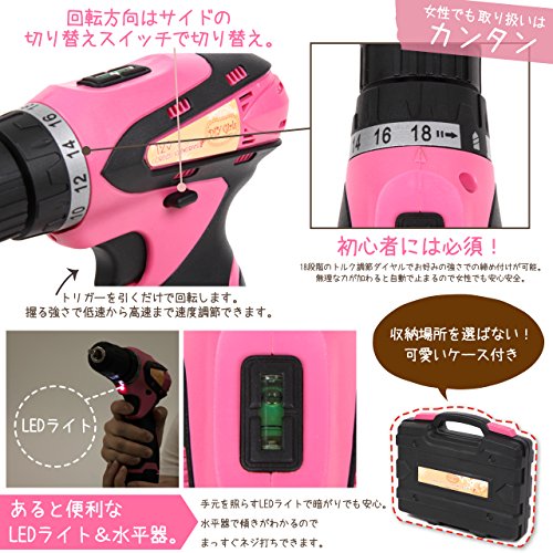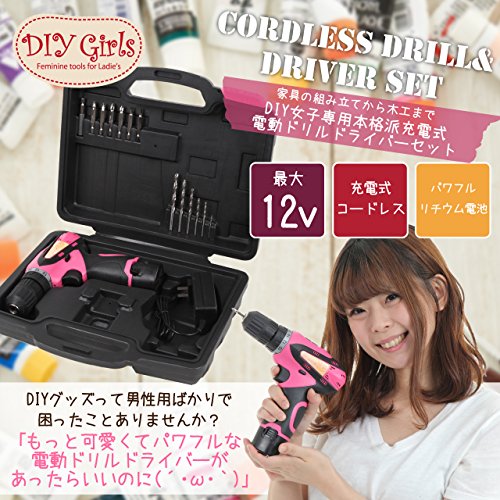 DIY Girls DIY女子専用 充電式 電動ドリルドライバーセット12v