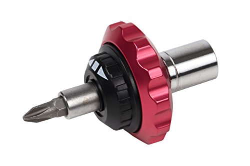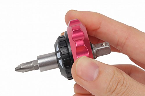 - アルミ削出しで高級感のあるギアレスラチェットスタビドライバー。全長62㎜(付属ビット装着時)で狭いところでもネジ回しが可能。(ビット無し全長 47㎜)